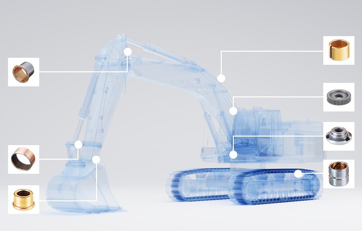 ZOB品牌的各类滑动轴承在工程机械及建筑机械的底盘系统、车身系统、液压系统有着非常广泛的运用。