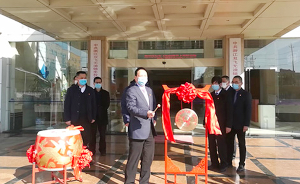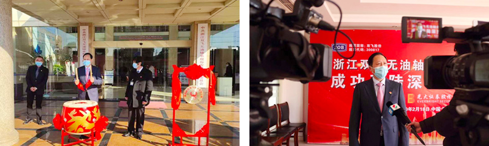 为防疫需要,根据证监会的要求,首页-澳门(金沙)官网网站首页股份并未安排深圳举行挂牌敲钟仪式,而只是在公司举行简单的上市庆祝活动,嘉善县干窑镇为首页-澳门(金沙)官网网站首页股份送来了一面鼓一面锣,以祝贺企业上市成功,鼓励企业以上市为契机,擂响冲锋战鼓,全力以赴抓复工。公司高管在董事长周引春的带领下,敲锣打鼓庆贺上市。
